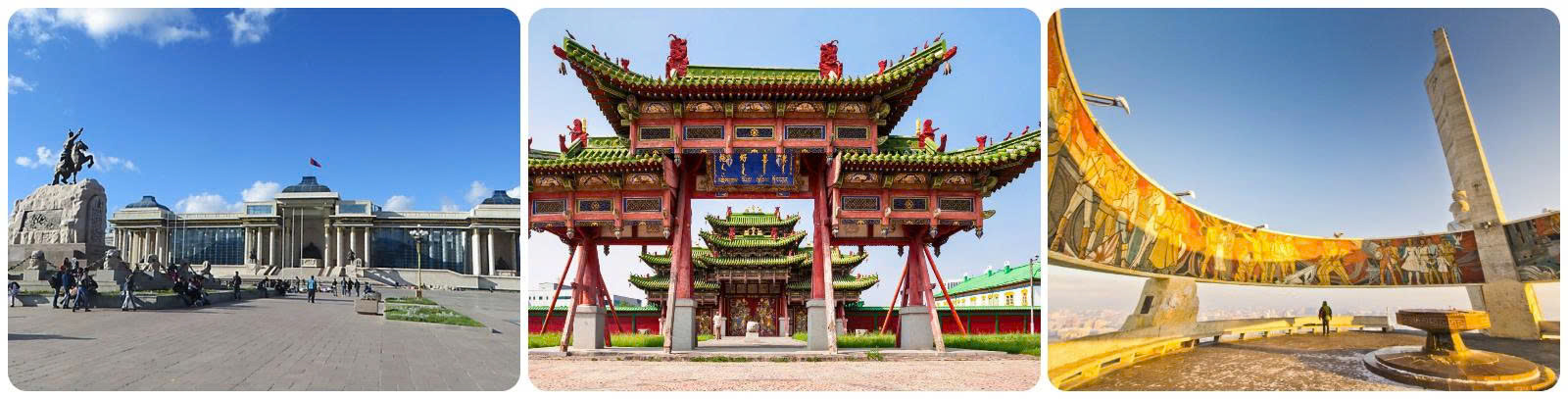 Quảng trường Sukhbaatar: là quảng trường công cộng rộng lớn ở trung tâm Ulaanbaatar có diện tích khoảng 30.000 mét vuông. Tượng đài của Thành Cát Tư Hãn, cũng như của Ögedei và Hốt Tất Liệt, nằm ở phía bắc của quảng trường, ngay phía trước Cung điện Trắng (Cung điện Chính phủ).Gandan Buddhist Monastery
